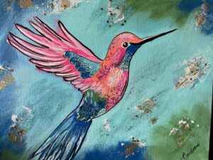What a fun, colorful hummingbird to paint for summer! You will love all the bright colors in this painting. 11”x14” canvas, all supplies included. Beginner friendly.